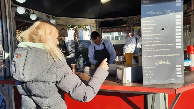 Auf dem Rückweg in die Stadt war da dieser Currywurst Stand. Dieser Verlockung konnte Sonja nicht widerstehen.