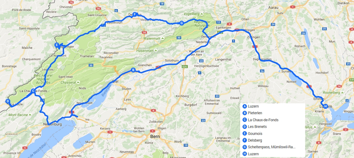 Fahrstrecke: Delemont –> Scheltenpass –> Balsthal –> Luzern