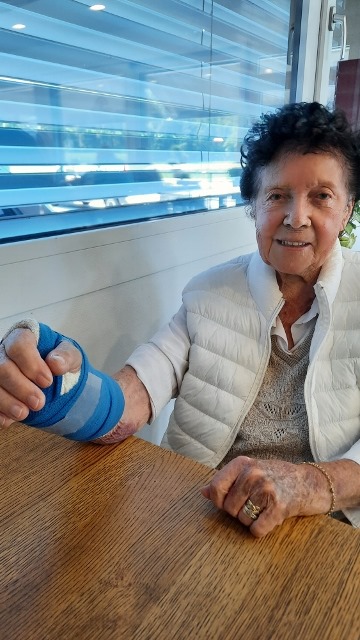 Könntest du uns nicht ins Spital fahren? Mami ist heute Nacht gestürzt auf dem Weg zur Toilette und hat sich vermutlich das Handgelenk gebrochen.