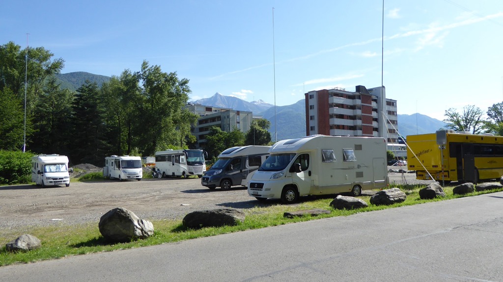 Wir stehen auf dem Stellplatz in Locarno. Wie schon vor 4 Jahren, ist der Platz auch heute noch keine Visitenkarte für eine Touristenstadt wie Locarno.