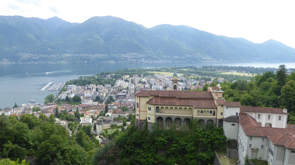 Wir sind mit der Standseilbahn zum Kloster Madonna del Sasso hoch gefahren. Von dort hat man einen schönen Ausblick auf den See und die Stadt Locarno.