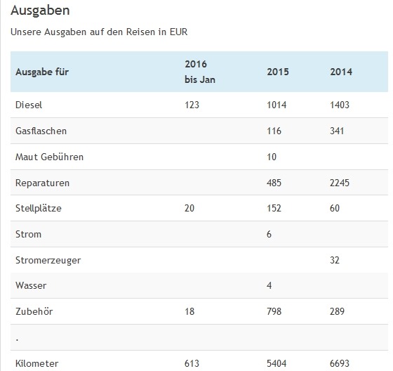 Weiter werde ich mit diesem Tool eine Tabelle ins Netz stellen mit den relevanten Ausgaben für unser Wohnmobil.