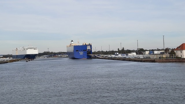 Von der Kaiserschleuse, vor dem Überseehafen, konnten wir einen Blick auf das Autoterminal erhaschen, den weltgrößten Umschlagplatz für Neuwagen. 2 grosse Autotransportschiffe, in der Branchensprache auch Car-Carrier genannt, konnten wir sehen die helfen über 1,7 Millionen Fahrzeuge im Jahr umzuschlagen.