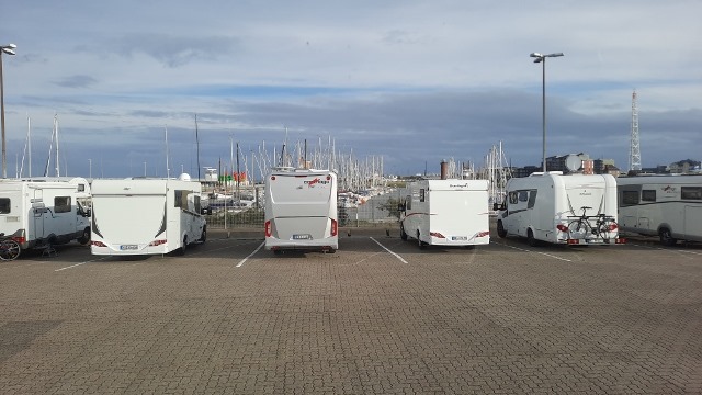 Unglaublich wie viele Wohnmobile hier stehen und wie viele versuchen einen Platz in der ersten Reihe zu ergattern.
