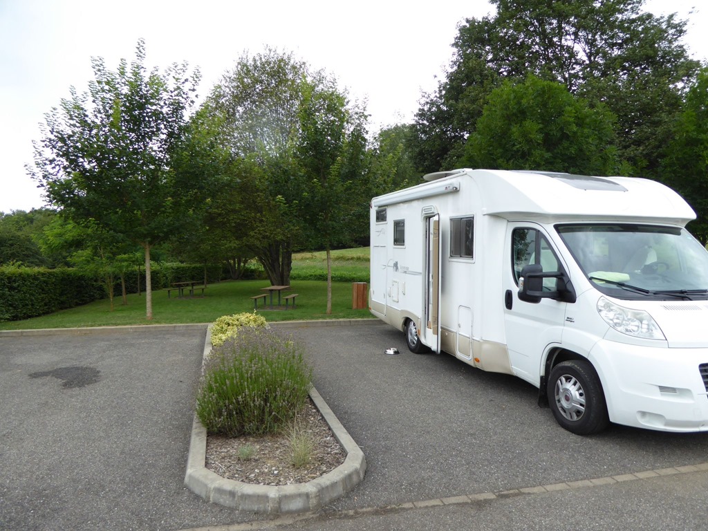 Die Entscheidung, welche Kleider heute am besten sind, war nicht leicht. Sportkleidung ohne Regenschirm dass schien uns richtig. Vom Stellplatz ins Dorf sind es 700m, rund 10 Minuten laut Wandertafel auf dem Platz.