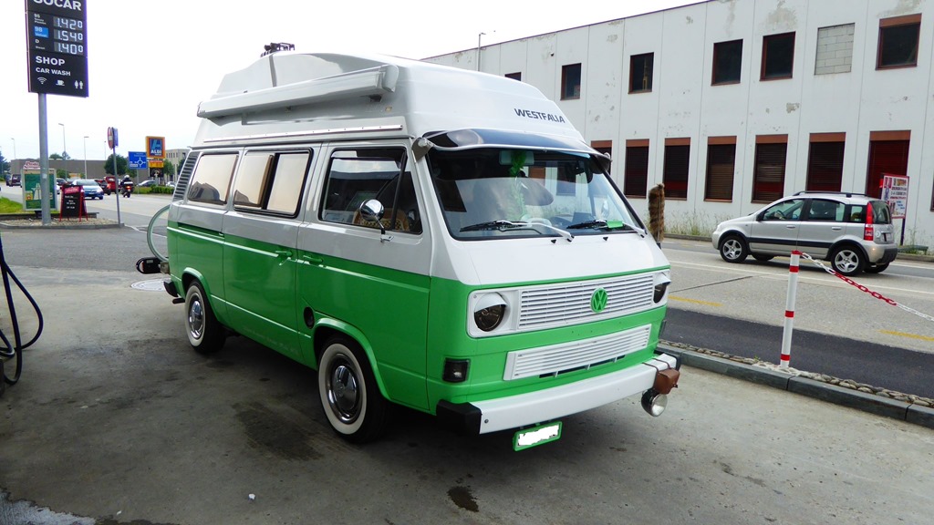 Heute kurz vor der Abfahrt habe ich sie angesprochen. Daraus wurde kurzerhand ein sehr Interessantes Gespräch. Wir wurden eingeladen und durften vor dem Morelo uns hinsetzen. Bei einer Flasche Prosecco erzählten sie viel über das Auto und Ihre Erfahrungen beim Reisen mit einem grossen Fahrzeug. Es stellte sich heraus das Hansjörg, der Fahrer den gleichen Jahrgang wie ich hat und wir am gleichen Tag Geburtstag feiern. So ein Zufall.