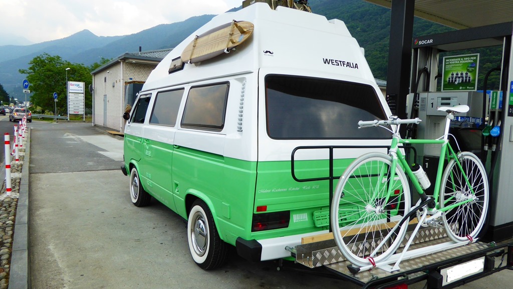 Unsere Abfahrt von Locarno verzögerte sich um die länge einer Flasche Prosecco. Auf dem Platz stand seit Donnerstag eine Morelo Crew aus Graubünden.