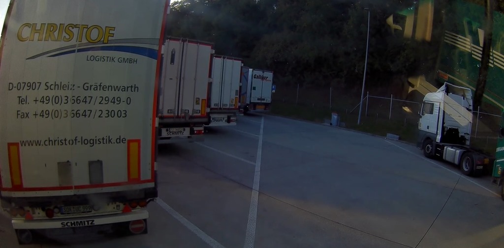 In Gunzgen fanden wir was wir suchten. Parkieren war nur noch in der zweiten Reihe möglich. Die LKW`s haben alle Parkplätze in Beschlag genommen.