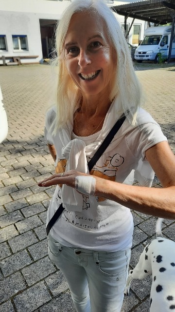 Sonja war beim Arzt, das kleine Geschwür an der Hand wurde endgültig raus operiert. In 14 Tagen können die Fäden gezogen werden dann sieht man nichts mehr von dem Eingriff.