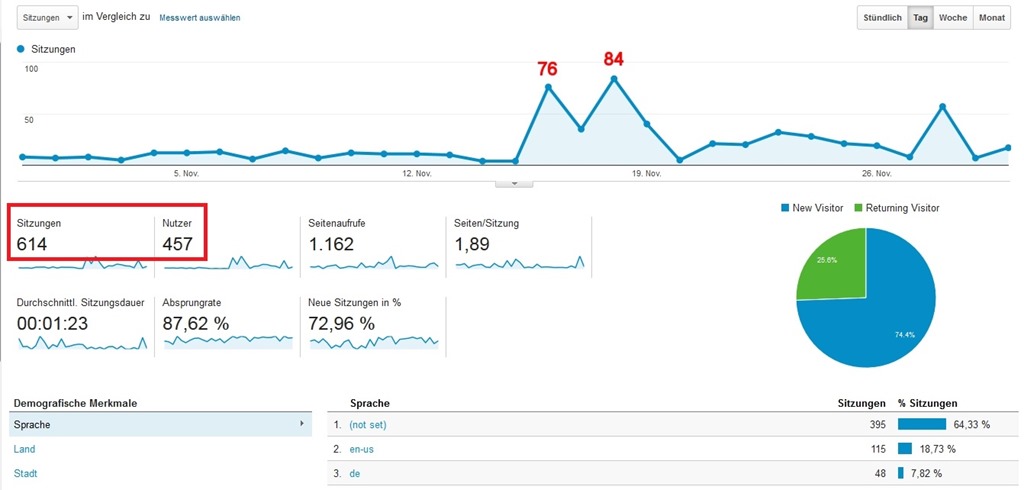 Meine Google Analytik Statistik ist enorm nach oben geschnellt. Woher kommen die vielen Besucher? Ist mir nicht klar. Ich versuche die Zahlen zu verstehen, vielleicht wurde ich irgendwo verlinkt.