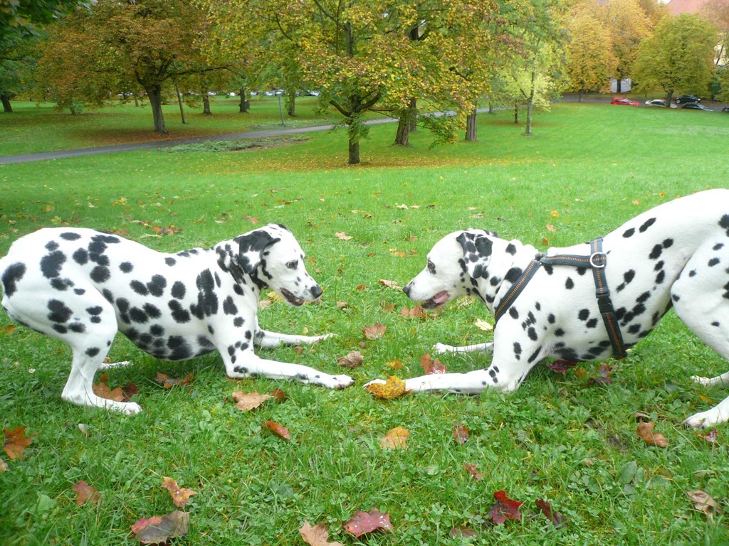 Der erste, ein schwarz-weisser war Taub genau so wie seine Begleiter. Aber sie haben sich Tip Top miteinander verständigt. Der zweite ein grosser braun-weisser. Dieser durfte nicht von der Leine. Warum wissen wir nicht.