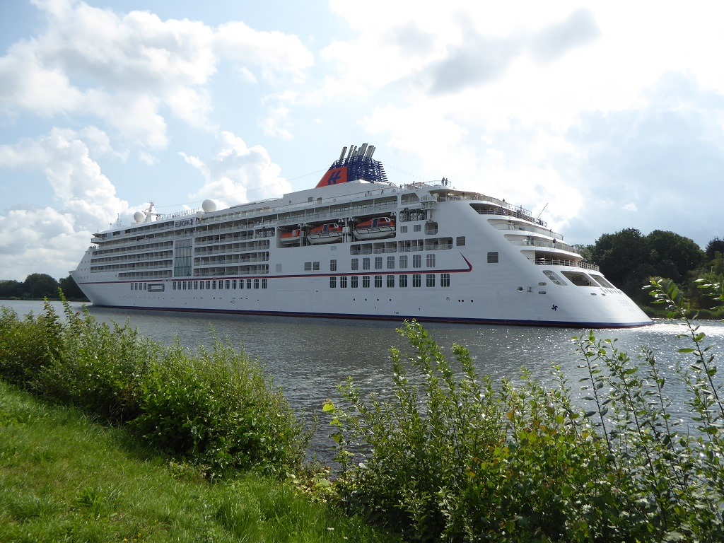 Ich glaube aber, dass ist nicht die Regel. So war es gestern mit der Amadea und heute mit der Europa II. Pünktlich wie im Fahrplan hat sie um 7 Uhr die die Schleuse in Brunsbüttel verlassen und den Weg unter den Bug genommen in Richtung Rendsburg und die Ostsee.