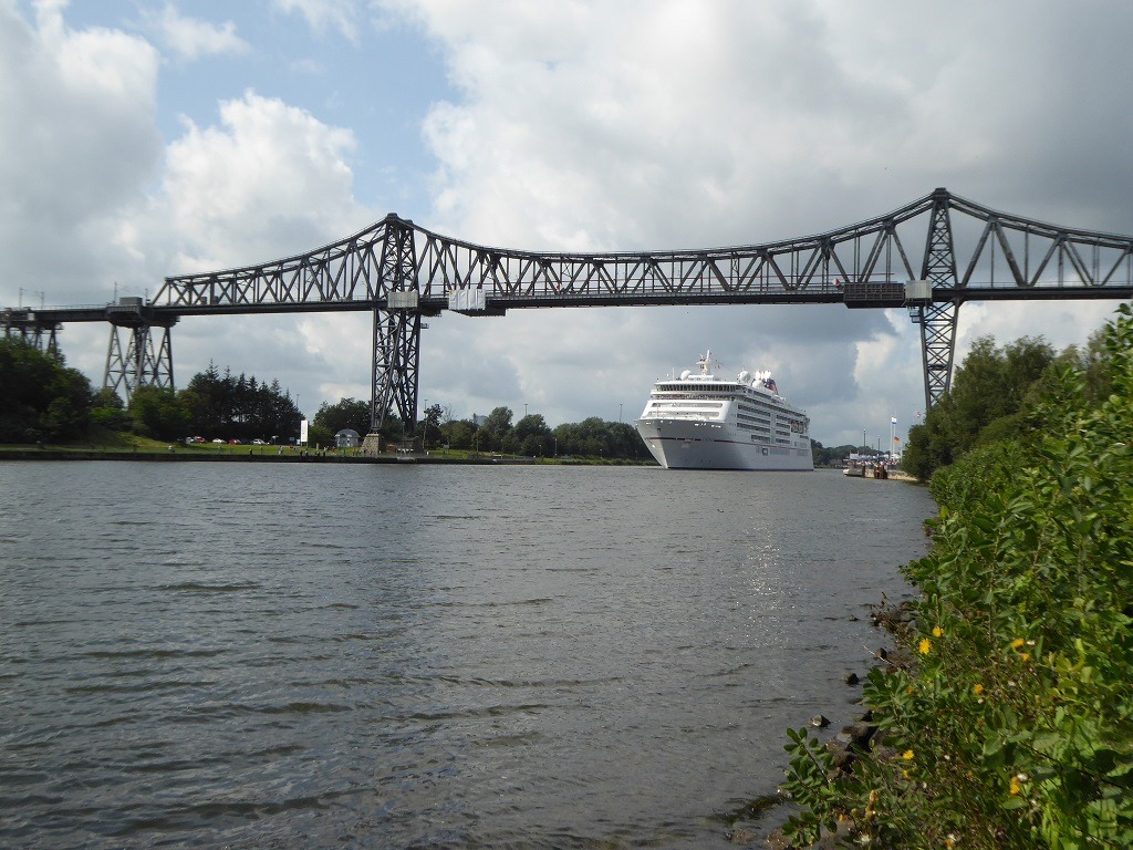 Im Oktober kommen wieder 2 grosse Schiffe durch den Kanal. Vielleicht sind wir dann wieder hier. Was ich aber mit Sicherheit weis, die Schwebefähre wird bis dann bestimmt nicht an der Brücke hängen.