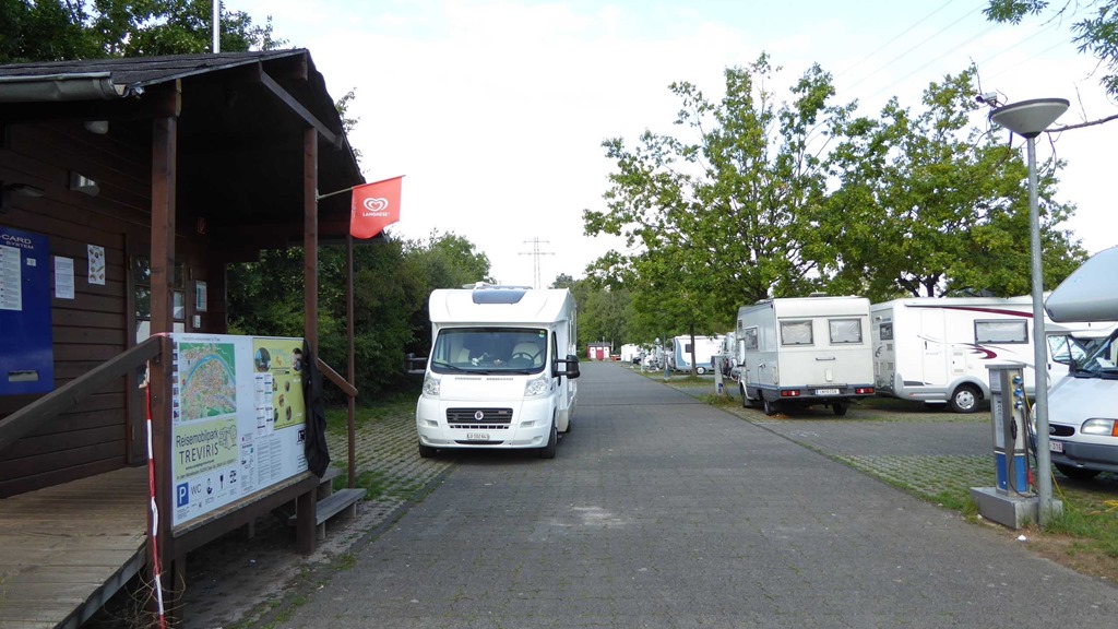 Eigentlich wollten wir zum Stellplatz im Französischen Saargemünd (Saareguemines). Dort angekommen stehen wir vor einem geschlossen Tor. Dahinter 3 Fahrzeuge. Der Platz ist an der Hauptstrasse und nichts besonderes. Die Anweisungen für die Einfahrt sind alle auf Französisch geschrieben. Eine Telefonnummer die man Anrufen soll. Mehr habe ich nicht verstanden. Zufälligerweise kamen 2 Personen retour die auf den Platz zu ihrem Fahrzeug wollten. Den Batch den sie dabei hatten um das Tor zu öffnen funktionierte nicht. Sie mussten die Telefonnummer anrufen und nach längerem hin und her wurde ihnen ferngesteuert geöffnet. Hier zu bleiben ist mit zu riskant. Wenn du in die Stadt gehst und beim zurück kommen nicht mehr zum Fahrzeug kommst ist dann beschissen. Ob die Telefonnummer immer besetzt ist weis ich auch nicht.