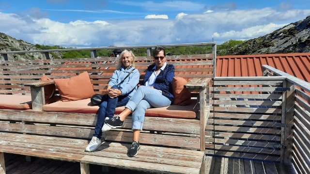 Erst die Sonne und die Aussicht geniessen und dann gab es was leckeres auf den Teller. Für die Schweden Fisch, Sonja nahm das Vegi Menü und ich bekam etwas mit Fleisch.
