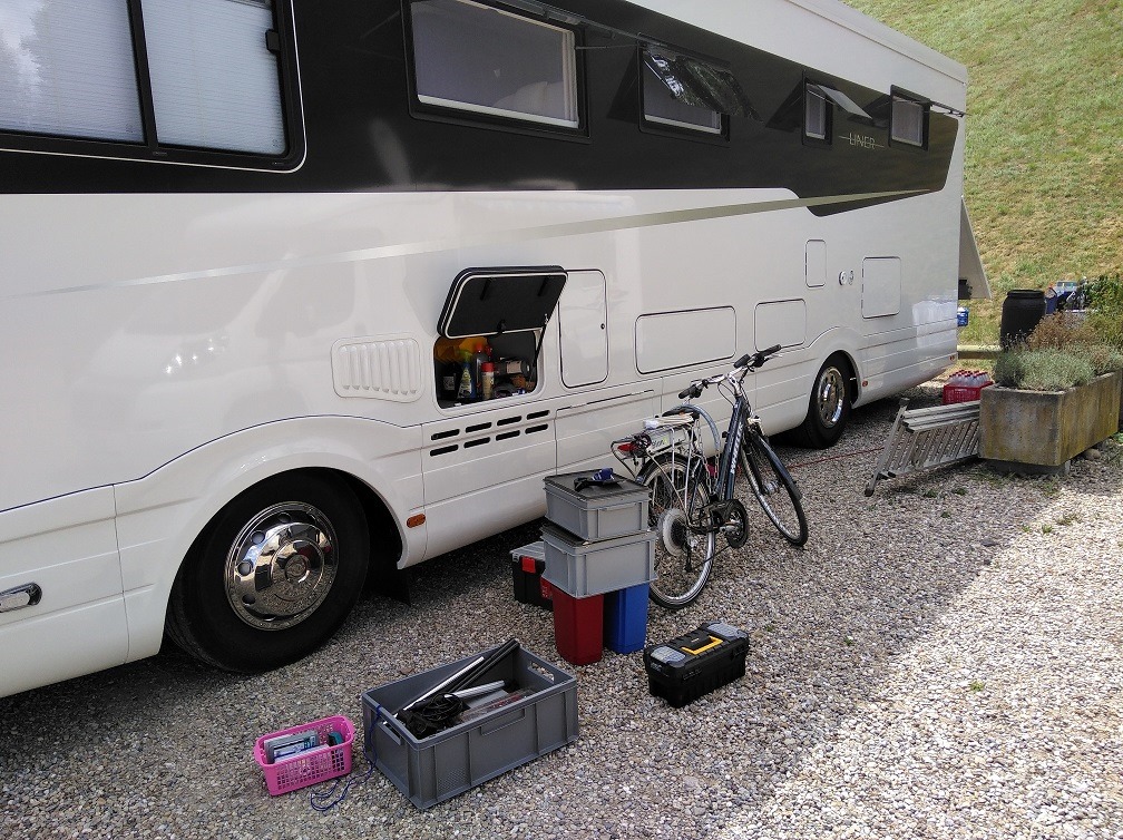Denn Tag konnten wir an der heissen Sonne mit vielen Optimierungen am Fahrzeug verbringen.