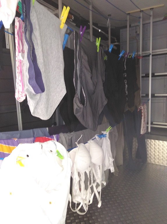 Trotzdem starteten wir die Waschmaschine und die Kleider wurden in der Garage zum trocknen aufgehängt.