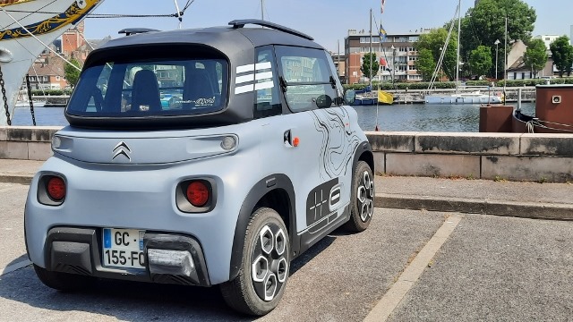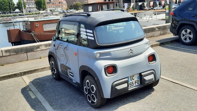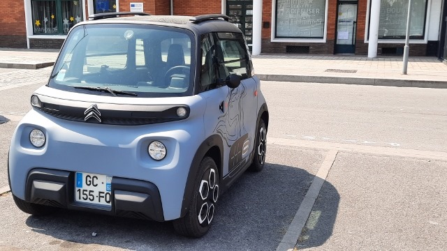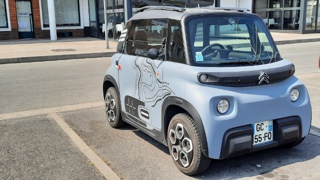 Unterwegs haben wir noch dieses witzige kleine Elektro Auto gesehen