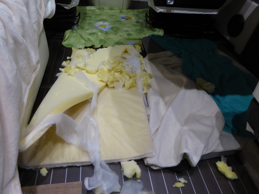 Am dicken Ende von ihrem Hinter kamen Reste des Schaumstoff unverdaut wieder raus.