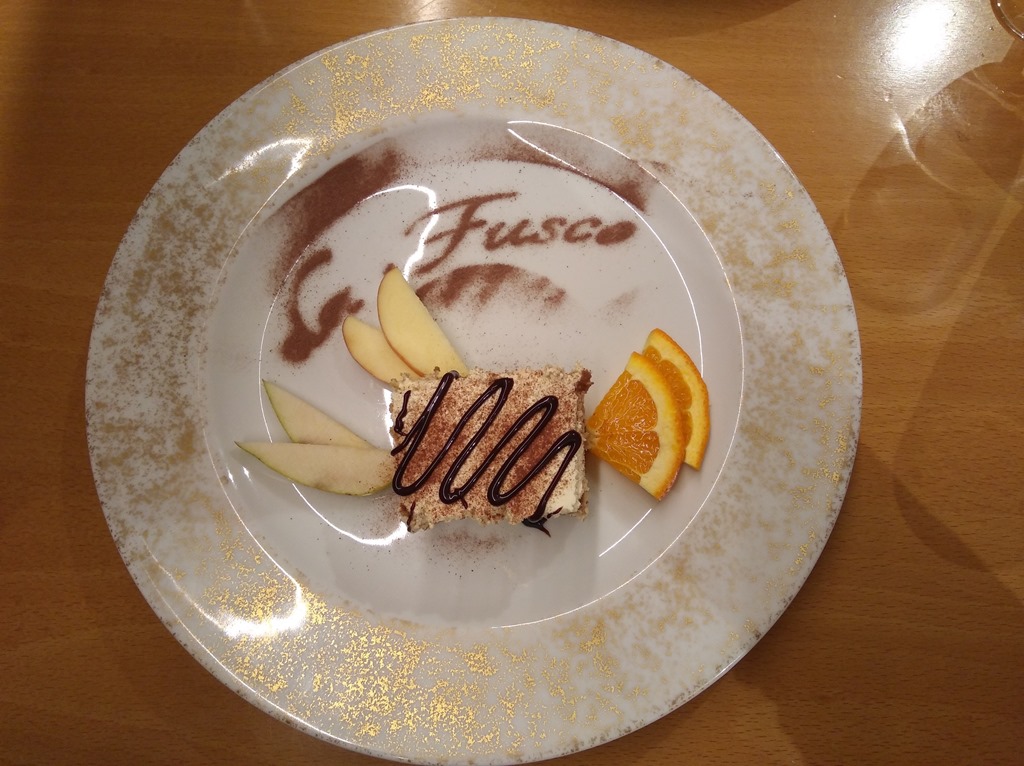 Zum Nachtessen setzten wir uns in eine Pizzeria. Weil ich als ehemaliger Musiker erkannt wurde offerierte der Chef uns ein Dessert.
