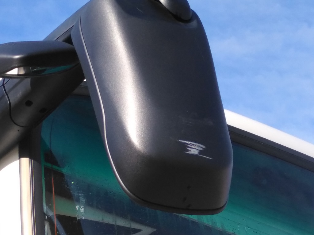 Ein anderes Wohnmobil hat einer meiner beiden Spiegel brutal verschoben und zerkratzt. Kaputt ging er nicht dank der Möglichkeit dass er sich abdrehen lässt, jedoch der Kunststoff wurde zerkratzt.