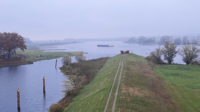 Gemeinsam laufen wir über den Deich in den Hafen.