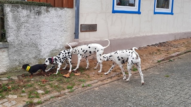 Plötzlich ist hier ein Dalmatiner zu viel auf der Strasse.