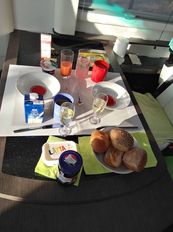 Und heute, die erste Nacht wir haben geschlafen wie Götter. Mit einem Champagne Frühstück starteten wir in den neuen Tag.