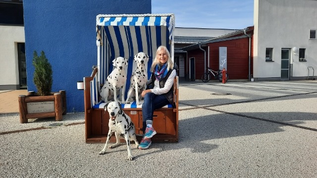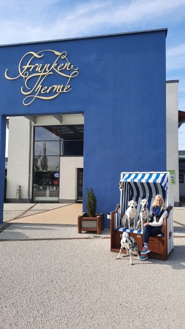 Anschliessend sind wir auf die Suche nach einem Lokal gegangen das uns mit den 3 Dalmatiner verköstigen will. Der zweite Versuch klappte, bei der Franken Therme Salza waren wir willkommen. Erst gab es Kaffee und Kuchen am Nachmittag und später ein Abendessen das wir beides draussen an der Sonne geniessen konnten.