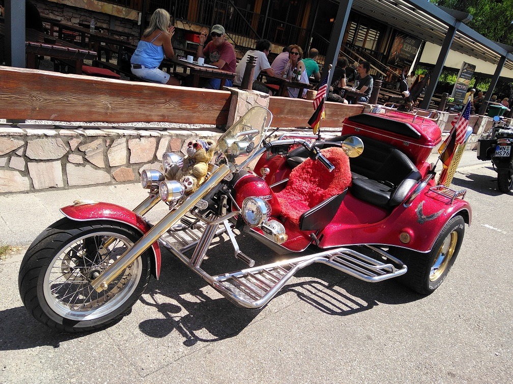 Die Elke hat ihre Maschine ebenfalls vor dem Lokal platziert und hat sich ein Bier gegönnt. Alkoholfrei ?, konnte nicht ermittelt werden.