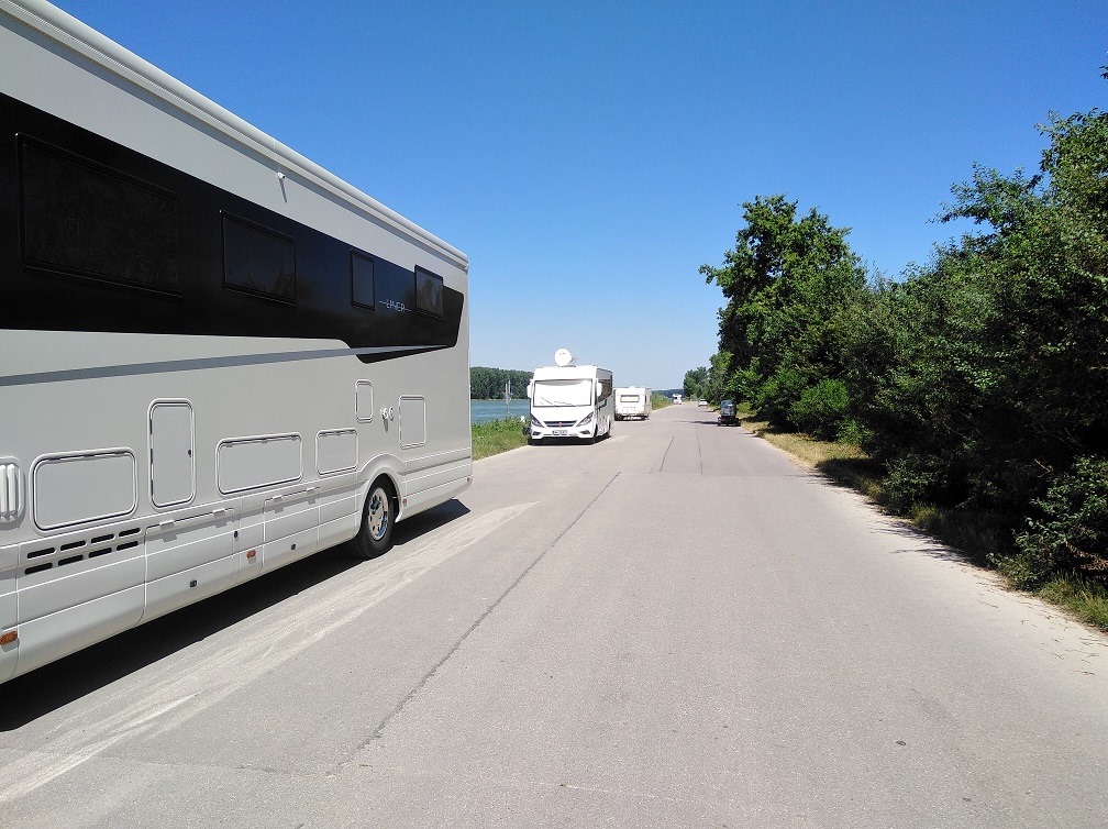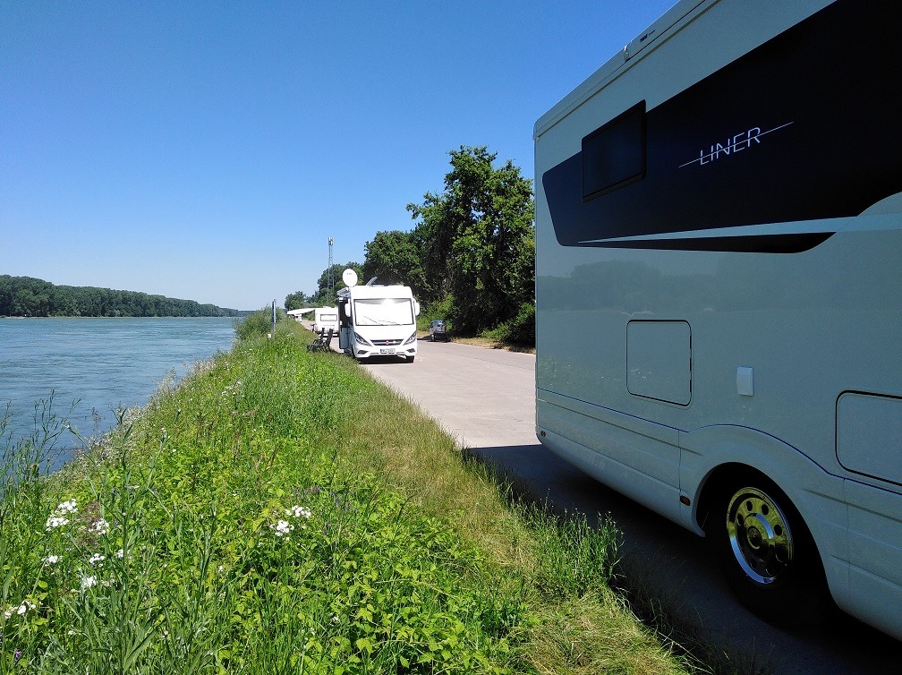 Gut geschlafen sind wir am Morgen aufgestanden und immer noch allein mit dem Wohnwagen Nachbarn am Rhein.