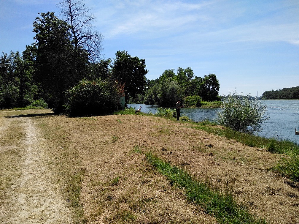 Als unsere Wohnung aufgeräumt war, der Abwasch erledigt, sind wir am Rhein entlang spaziert. Bis wir auf einen Fischer gestossen sind der von einem Storch beobachtet wurde. Ab und zu haben die beiden miteinander geredet. Geht es vielleicht ums Teilen der Fische ?