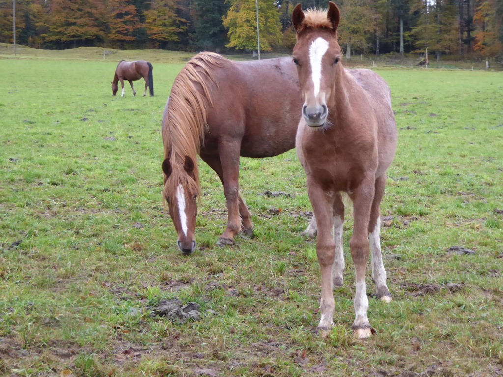 Trotz Regen war es ein toller Tag. Freilaufende Pferde der Rasse Freiberger, sind in dieser Gegend eine der meist gezüchteten Tiere.