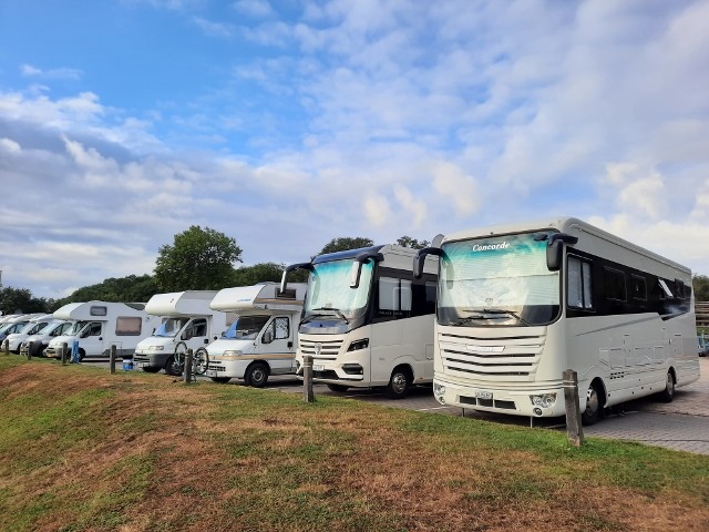 Auch heute gab es nur Kaffee und Kuchen ohne durch die überfüllten Gassen zu spazieren. Bei schönem Wetter setzten wir uns vor die Womo Reihe am Yachthafen.