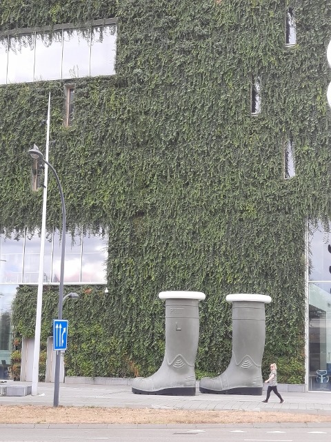 Das Kunstwerk “The Boots” steht als Wertschätzung für die arbeitende Bevölkerung direkt vor dem Gemeindehaus bis im Oktober. Dann laufen die Stiefel weiter an einen neuen Standort.
