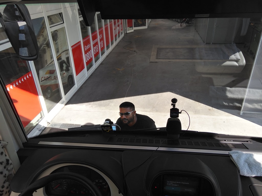 Danach kümmerte ich mich mit der Versicherung um meinen Steinschlag in der Frontscheibe. Ich durfte diese bei einer bekannten Firma aus der Rundfunk und Fernsehwerbung reparieren lassen ohne in einer Warteschlange zu warten.