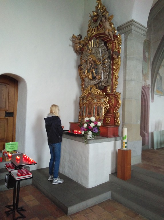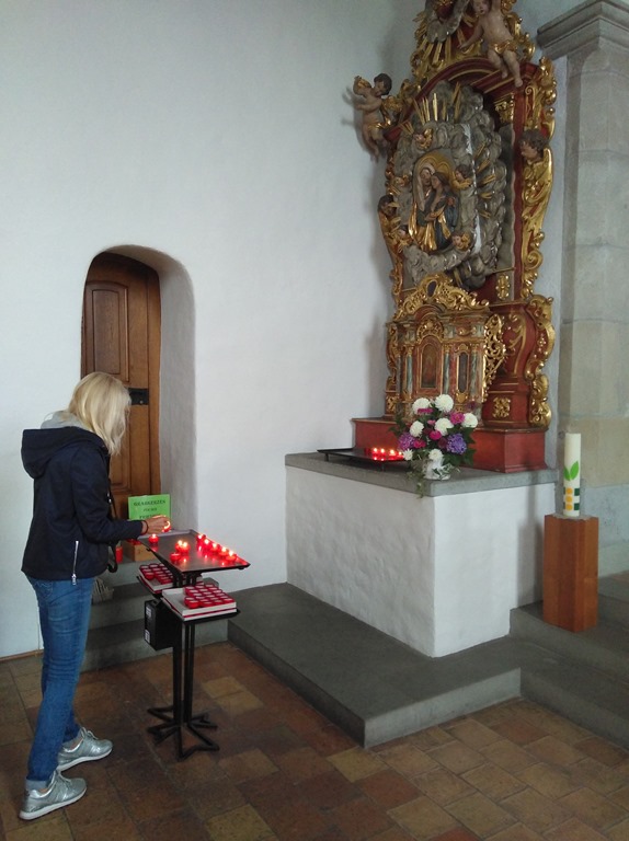 Für einen sehr guten Bekannten haben wir in der Kirche ein Kerze angezündet. Auch in unserer Familie gibt es einen lieben Menschen der mit dem Krebs kämpft. Auch für ihn brennt nun ein Licht in der Kirche.