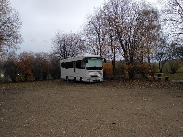 Das Wegfahren von Stellplatz war etwas leichter wie die Anfahrt. Unser Yannik (Navi-Stimme) wollte uns über die Friedhofgasse zum Platz führen. Was mir nicht behagte denn es war recht eng und nicht übersichtlich. Ich übernahm seinen Job und fuhr selbständig auf einem anderen Weg zum Ziel. Es war nicht der offizielle aber immer noch besser wie der Vorschlag von Yannick.