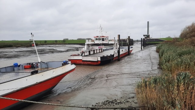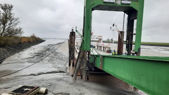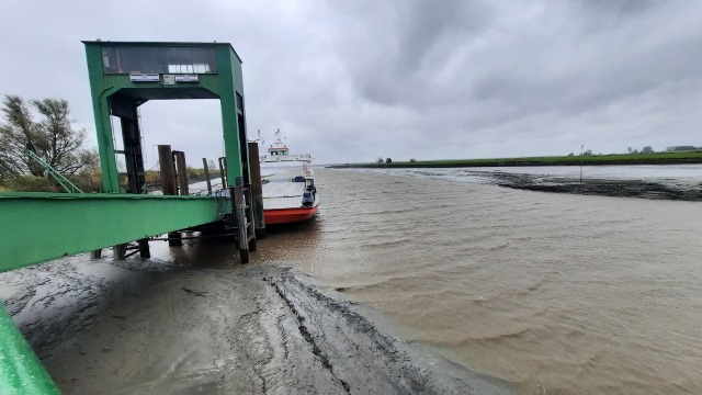 Beim Aufstehen heute Morgen immer noch stark Regen und Orkan Winde. Die Fahrt über die Elbe war nicht mehr möglich. Der Fährbetrieb wurde eingestellt wegen Niederwasser. Das Schiff hatte zu wenig Wasser unter dem Kiel.