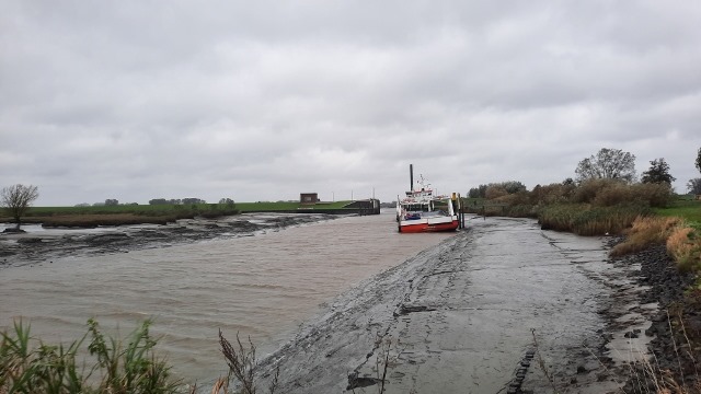 Der Orkan an der Nordsee drückt das Wasser retour ins Meer, somit fehlt dieses im Elbekanal was die Schifffahrt zum Erliegen bringt.