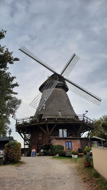 Es handelt sich um eine fünfstöckige Galerieholländermühle