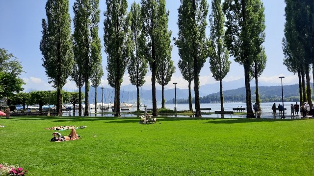 Das Wasser ist noch nicht zurück im See und schon liegen die Sonnenhungrigen auf der Wiese dort wo es trocken blieb. Wirklich Sommer hatten die Luzerner noch nicht. Da wird jeder Sonnenstrahl ausgenutzt und aufgesogen.