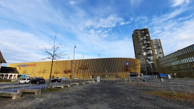 Der Weg zum Fachgeschäft führt mich über die Allmend von Luzern, vorbei am Fussballstadion des Fussball Club Luzern
