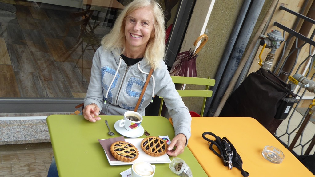 Danach gab es Kaffee und Kuchen. Für die zwei Süssigkeiten auf dem Foto, vier Kaffee und ein 3dl Glas frischen Orangensaft haben wir 12 Euro bezahlt.