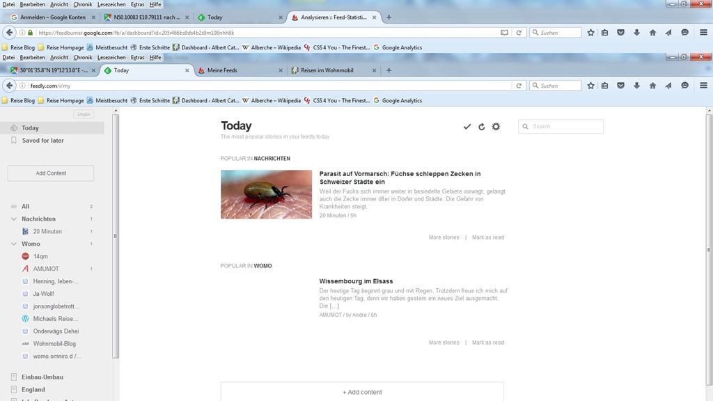 Mit Hilfe von Google habe ich mich für Feedly.com entschieden. Die ersten Blogs habe ich schon mal abonniert.