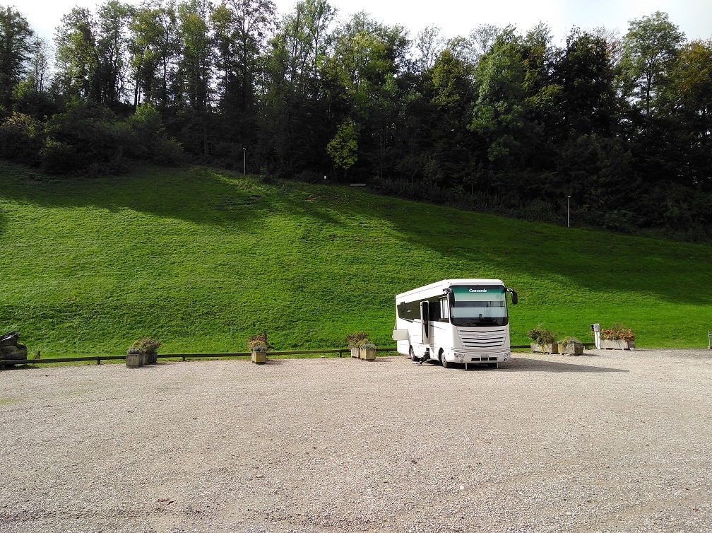 Ist Saison Ende auf dem Stellplatz in Willisau?. Einige Stunden standen wir ganz alleine da. Doch bis zum Abend füllte sich der Platz wieder. Die Saison geht weiter.