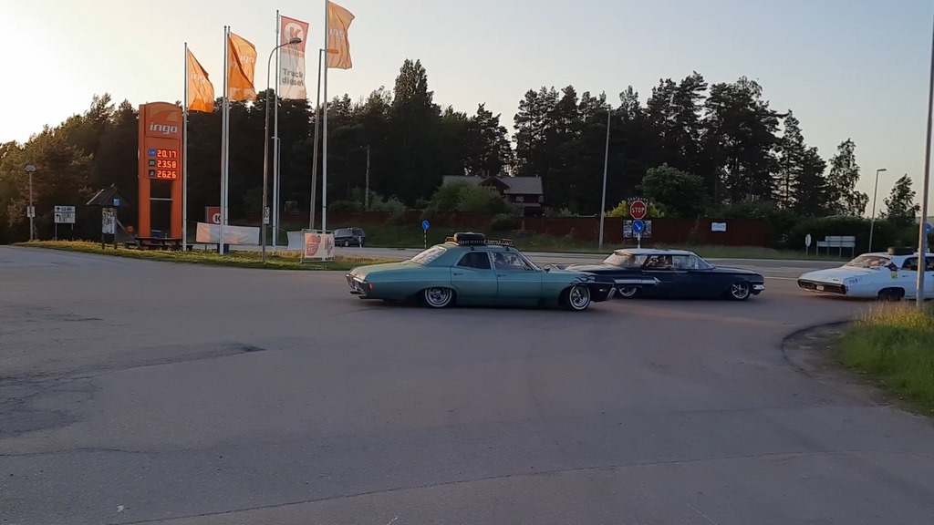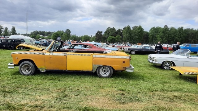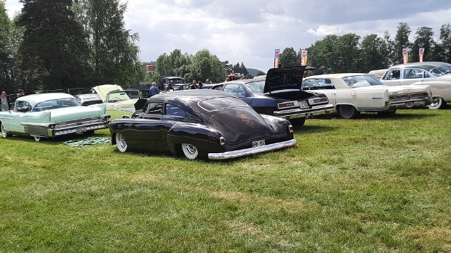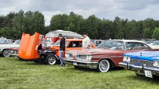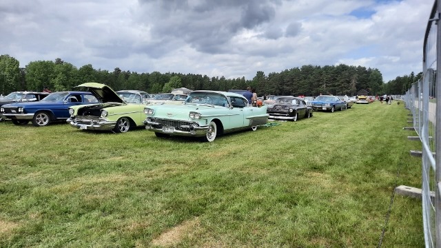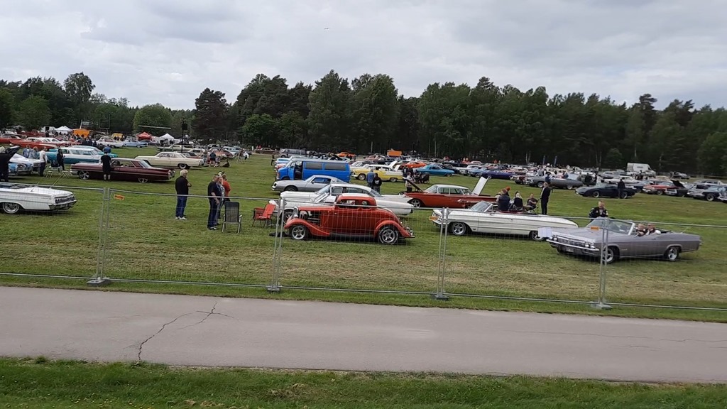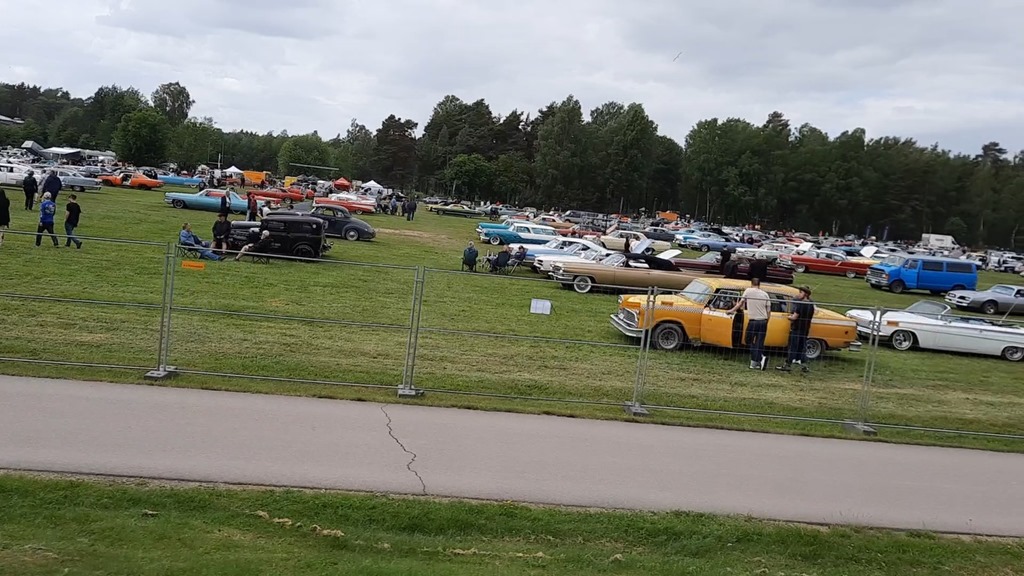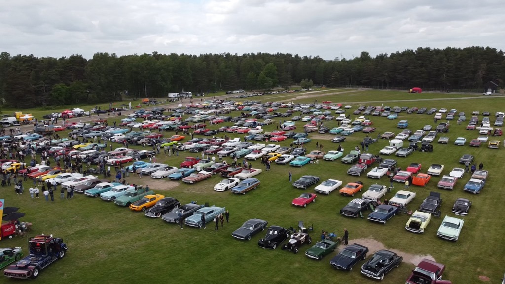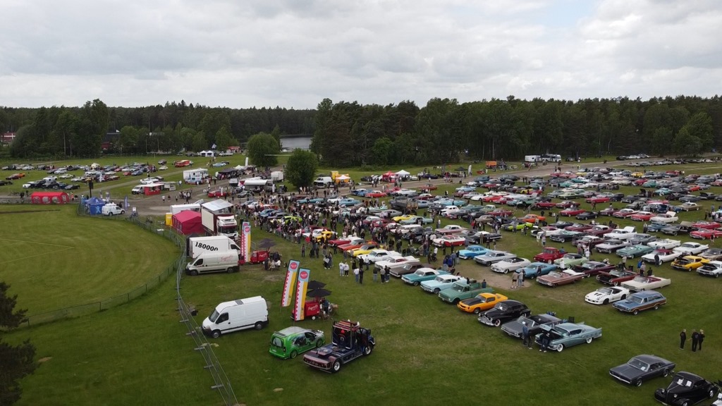 Auf der Schnellstrasse E18 noch in Karlstad, sah ich aus dem Blickwinkel viele Amerikaner Autos auf einer Wiese stehen. Schnell wurde der Beifahrer angewiesen mich dort hin zu Lotzen.
