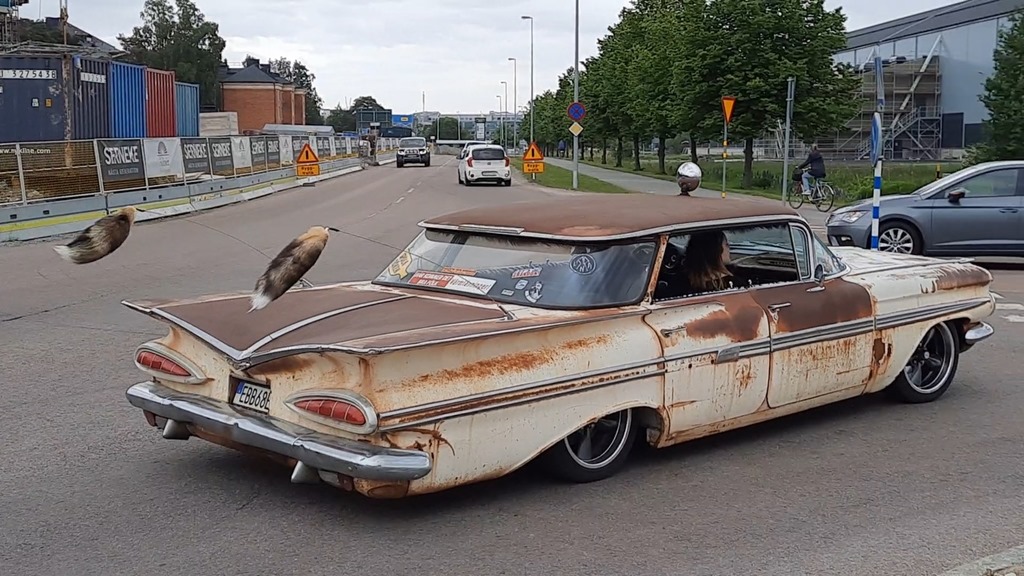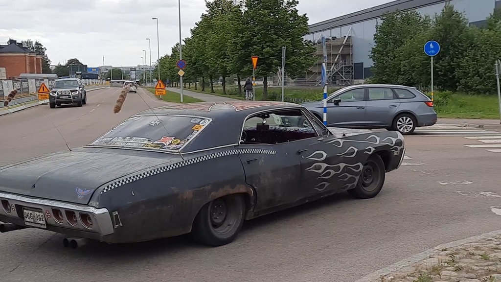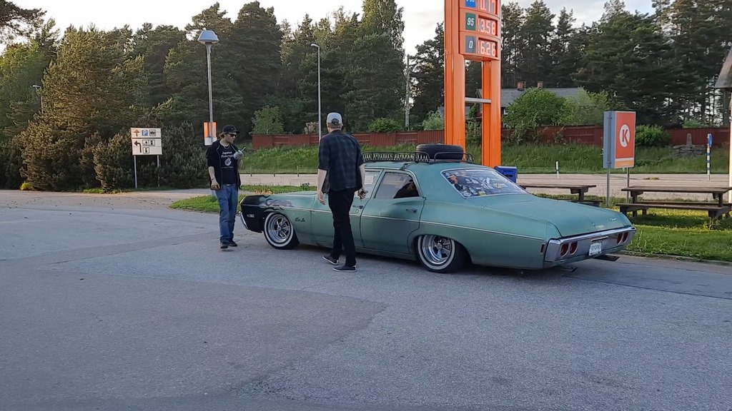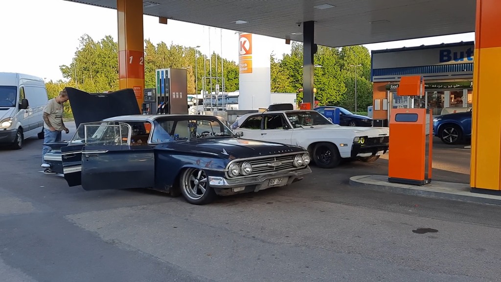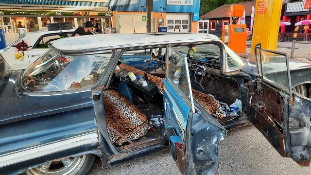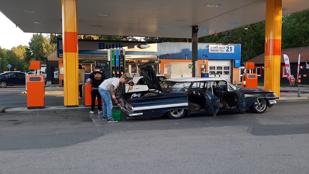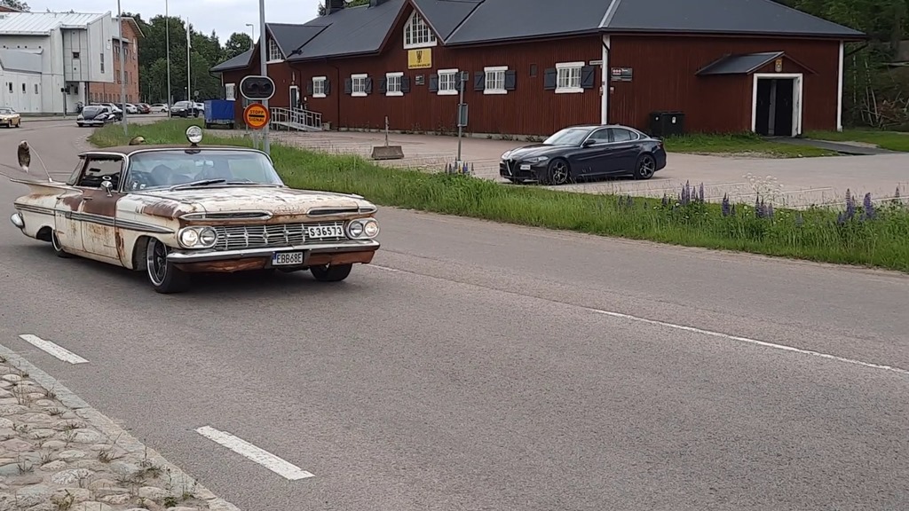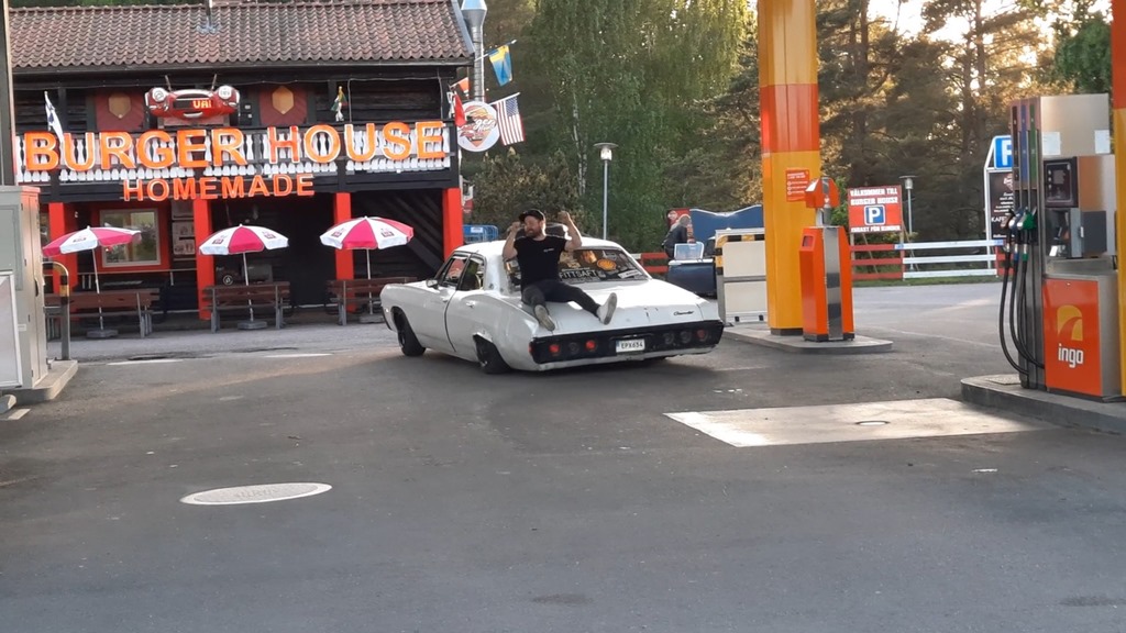 Auf der Schnellstrasse E18 noch in Karlstad, sah ich aus dem Blickwinkel viele Amerikaner Autos auf einer Wiese stehen. Schnell wurde der Beifahrer angewiesen mich dort hin zu Lotzen.