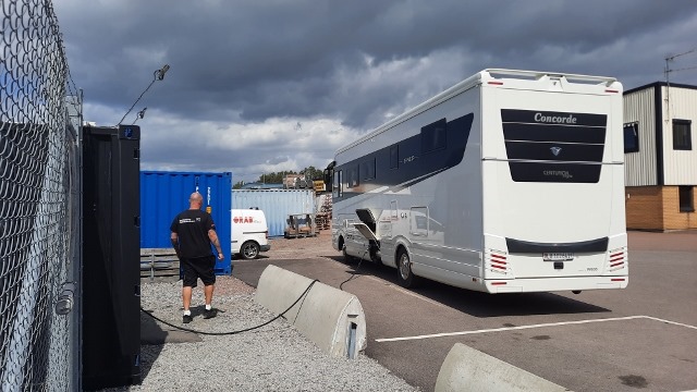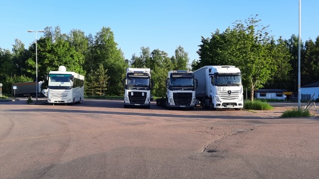 So nahmen wir die Notlösung bei den LKW-Fahrern auf dem Rastplatz in Ölme