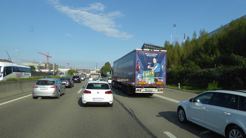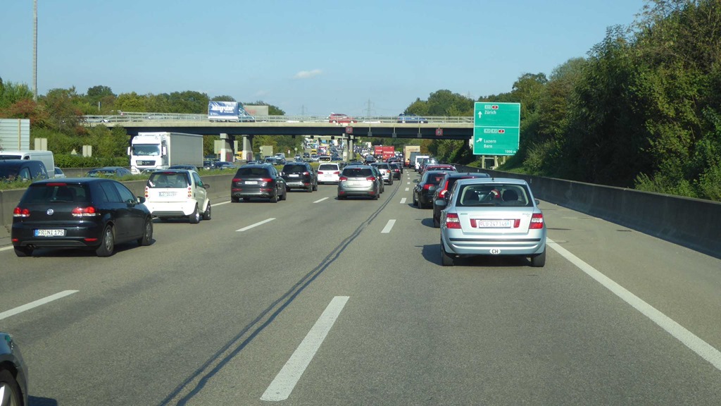 So sind wir nach dem Einkaufen in Richtung Heimathafen gestartet. Kaum über der Grenze fing es an zu Stauen.